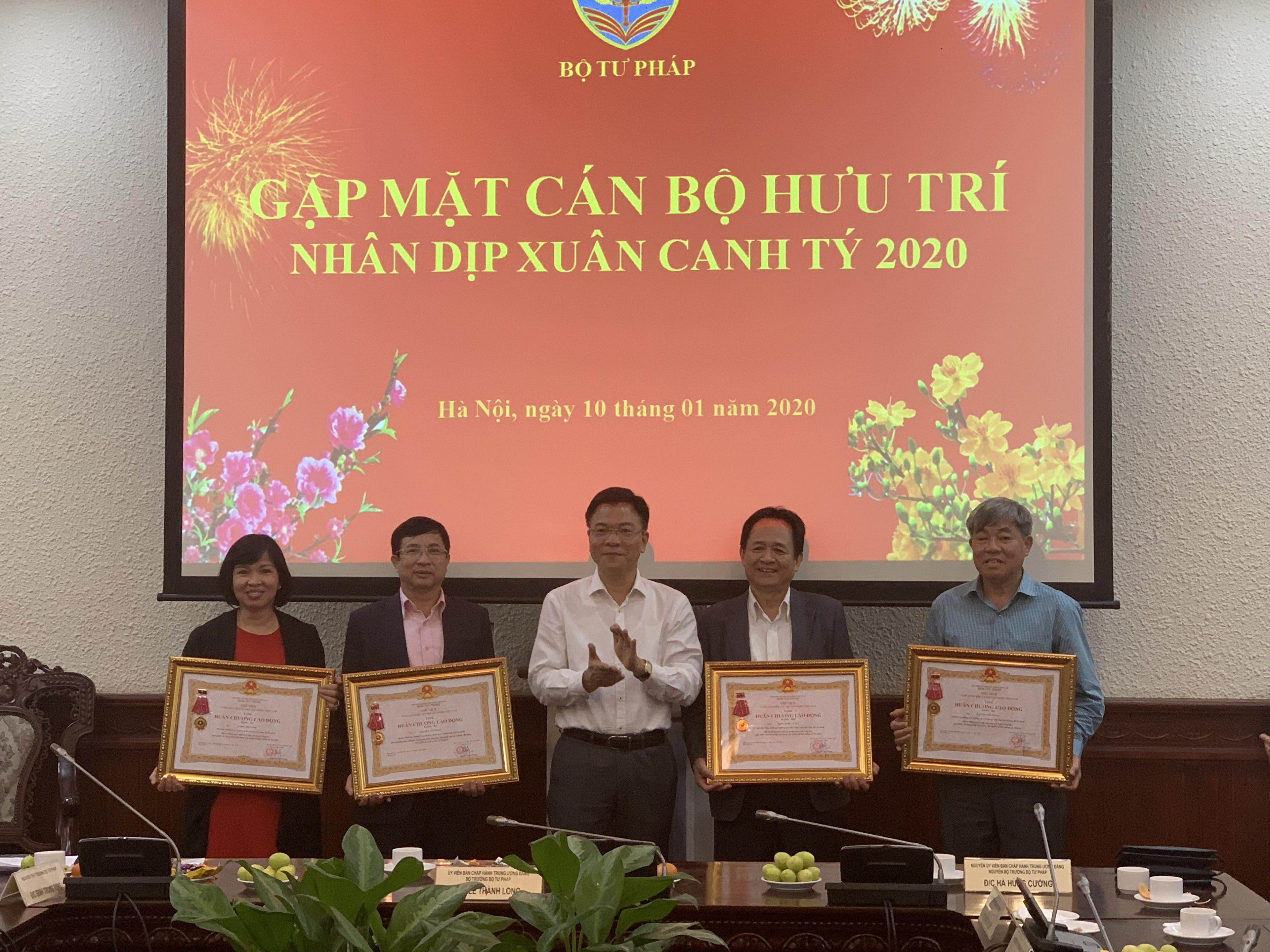 Gặp mặt các cán bộ hưu trí đầu xuân là một trong những hoạt động thường niên của Bộ Tư pháp, là dịp để các thế hệ cán bộ hưu trí gặp gỡ, chia sẻ thông tin về tình hình của đơn vị, Bộ, ngành và cùng nhau ôn lại những kỷ niệm trước thềm năm mới mỗi dịp Tết đến xuân về. Nhân dịp này, Bộ Tư pháp cũng công bố và trao Quyết định Huân chương lao động các hạng cho các cá nhân có quá trình cống hiến.