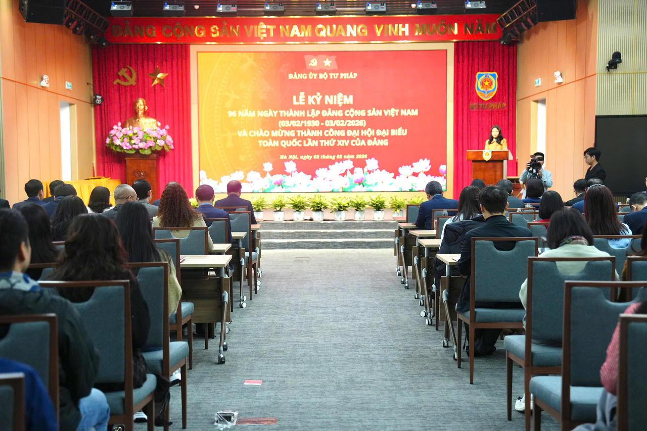 Ngày 3/2, Đảng bộ Bộ Tư pháp long trọng tổ chức Lễ kỷ niệm 96 năm Ngày thành lập Đảng Cộng sản Việt Nam (3/2/1930 – 3/2/2026) và chào mừng thành công Đại hội đại biểu toàn quốc lần thứ XIV của Đảng.