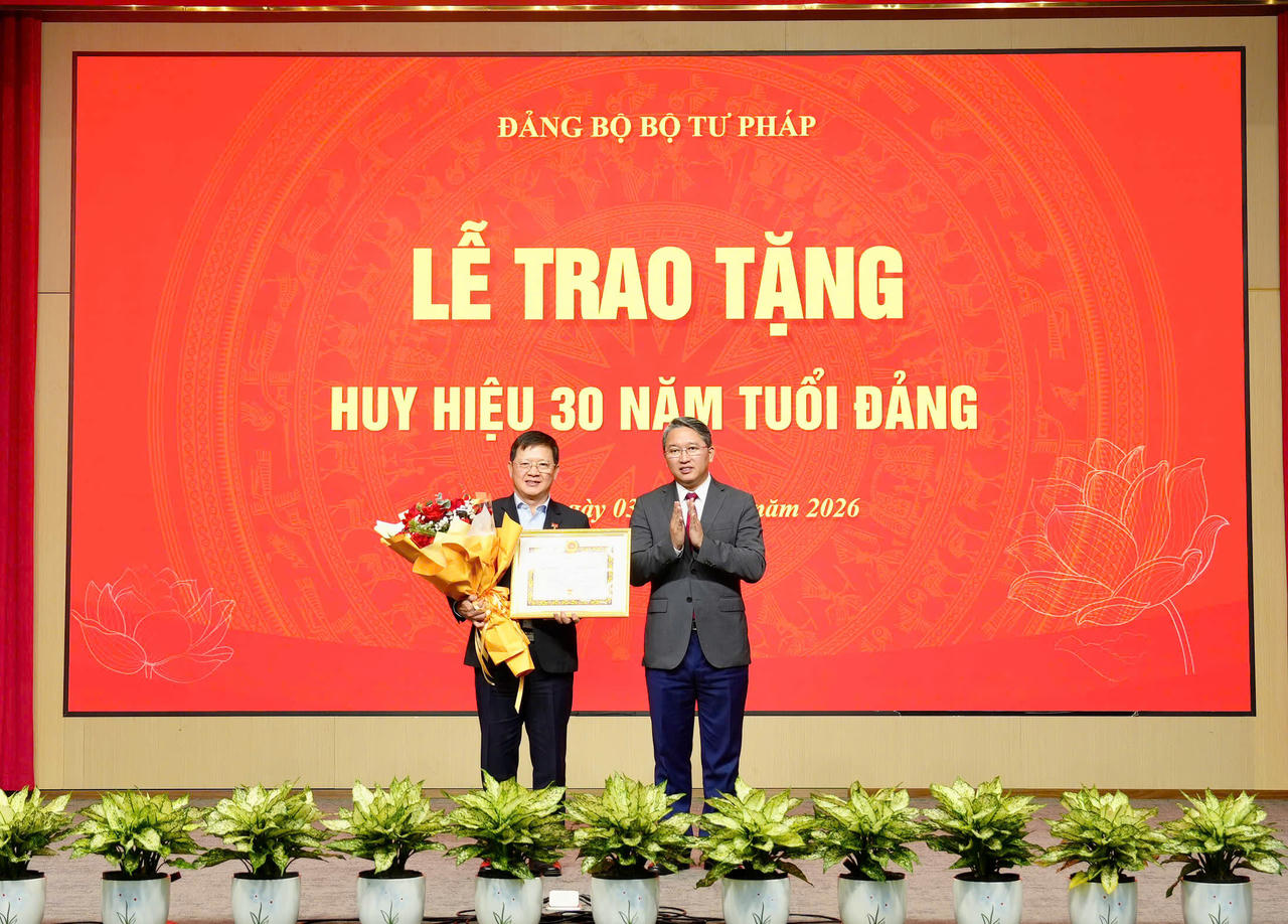 Nhân dịp này, Bộ trưởng Bộ Tư pháp Nguyễn Hải Ninh đã trao Huy hiệu 30 năm tuổi Đảng; Bằng khen của Đảng uỷ Chính phủ cho Đảng uỷ Bộ Tư pháp.
