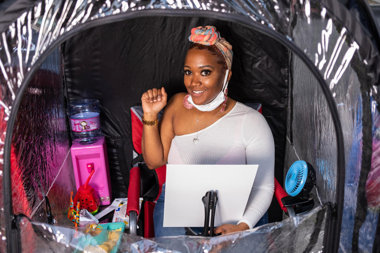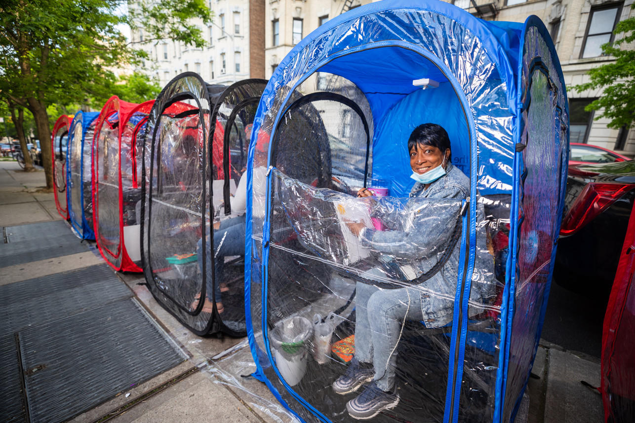 "Tôi đã nói chuyện với chồng về việc tôi muốn làm gì đó để bạn bè và tôi có thể gặp nhau trò chuyện mà vẫn thực hiện giãn cách xã hội" - Theresa Smythe nói, "Cứ như thể Google nghe được câu chuyện vậy, chỉ vài phút sau, những chiếc lều cá nhân hiện ngay trên màn hình máy tính của tôi".