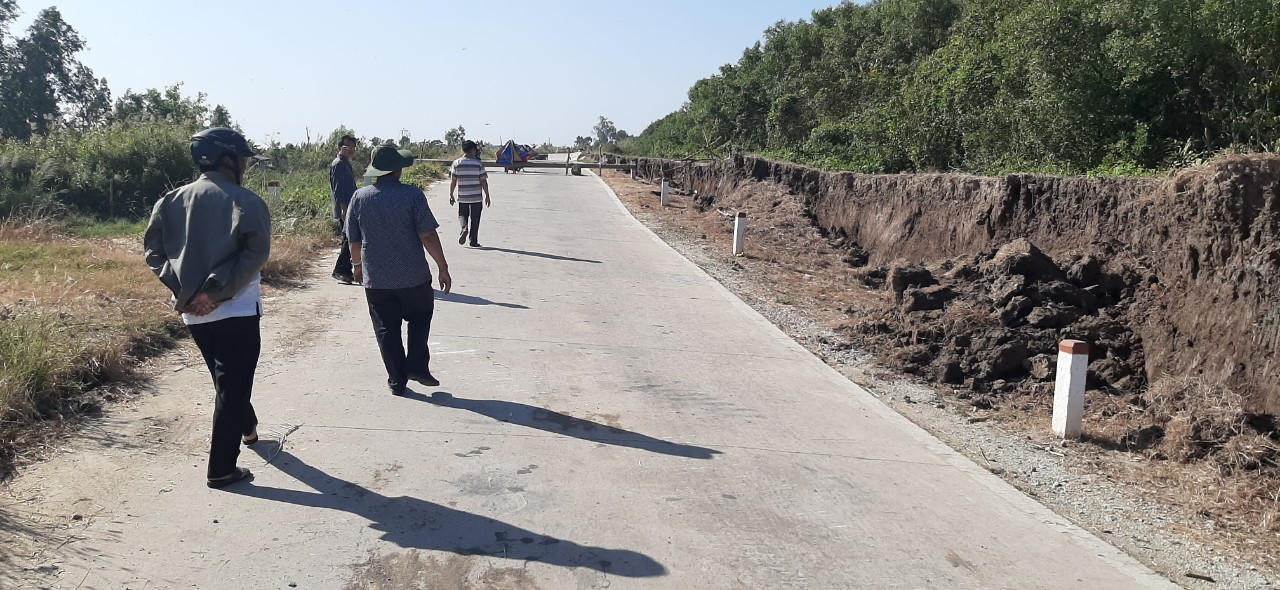 Ông Nguyễn Cảnh Hạnh - Phó chủ tịch UBND xã Khánh Bình Tây cho biết: Nguyên nhân ban đầu xác định là do khô hạn kéo dài khiến mực nước trong kênh hạ xuống thấp, gây áp lực lên thân đê dẫn đến đường bị sụp lún.