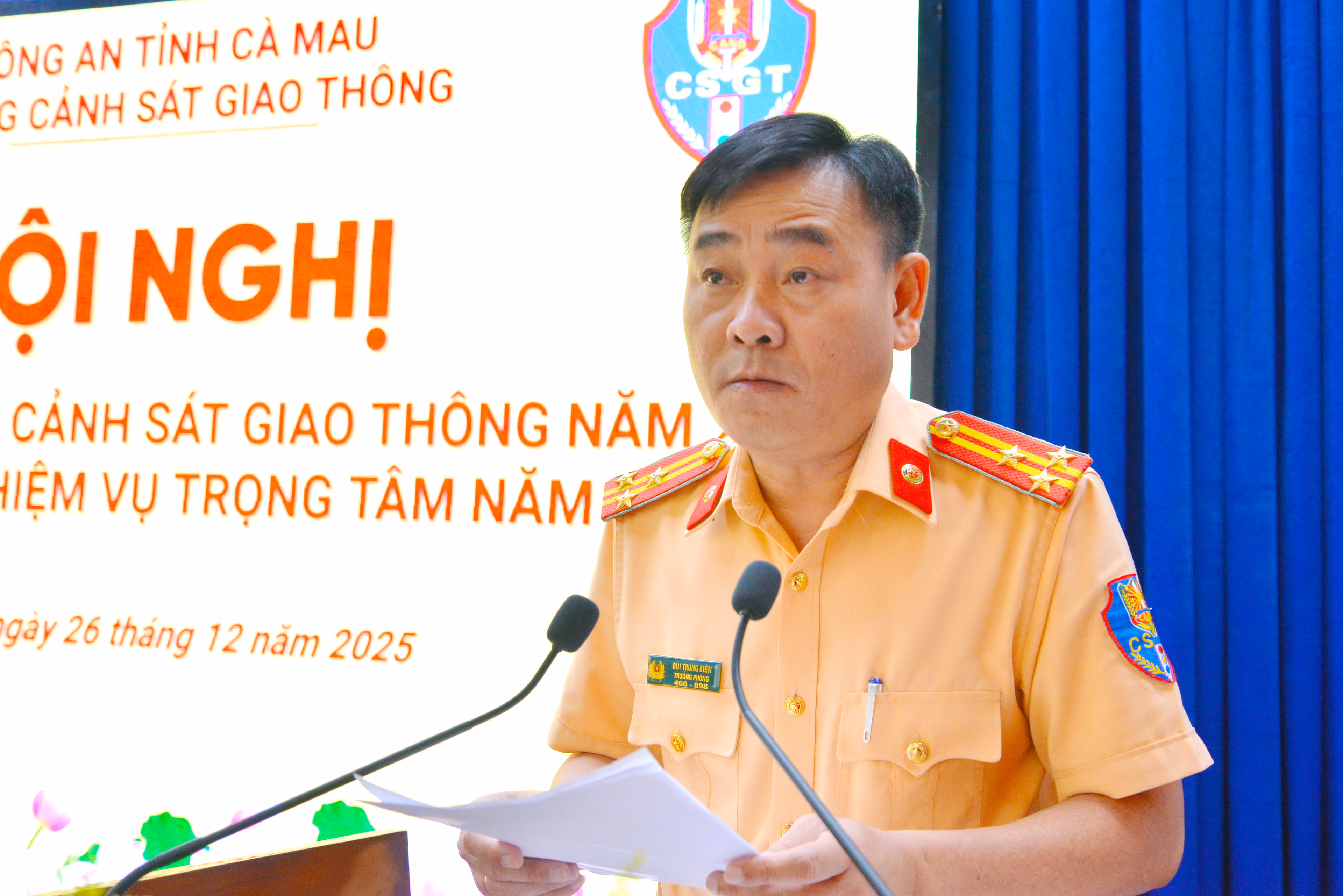 Đại tá Trần Văn Thi - Ủy viên Ban Thường vụ Đảng ủy, Phó Giám đốc Công an tỉnh Cà Mau ghi nhận, biểu dương những nỗ lực, kết quả mà lực lượng Cảnh sát giao thông đã đạt được trong năm 2025; đồng thời yêu cầu tiếp tục đổi mới tư duy, phương pháp công tác, tăng cường ứng dụng khoa học công nghệ, chuyển đổi số, xử lý nghiêm vi phạm, siết chặt kỷ luật, kỷ cương, phòng ngừa tiêu cực, góp phần kéo giảm tai nạn giao thông bền vững.