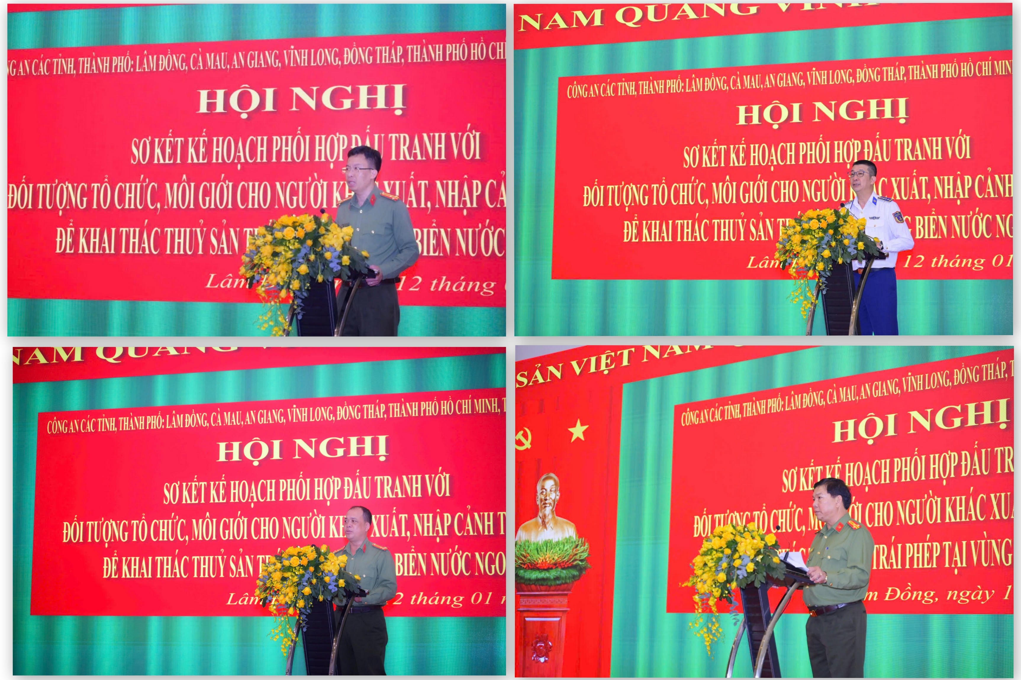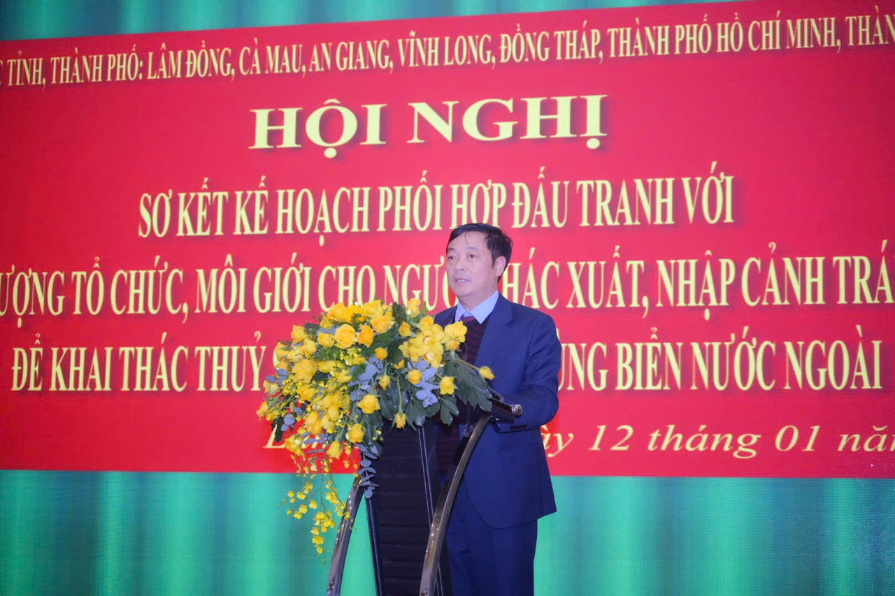 Ngày 12/1, tại tỉnh Lâm Đồng, Công an 7 tỉnh, thành phố gồm: Cà Mau, An Giang, Cần Thơ, Vĩnh Long, Đồng Tháp, Lâm Đồng và TP Hồ Chí Minh đã phối hợp tổ chức Hội nghị sơ kết Kế hoạch phối hợp đấu tranh với các đối tượng tổ chức, môi giới cho người khác xuất, nhập cảnh trái phép để khai thác thủy sản trái phép tại vùng biển nước ngoài.