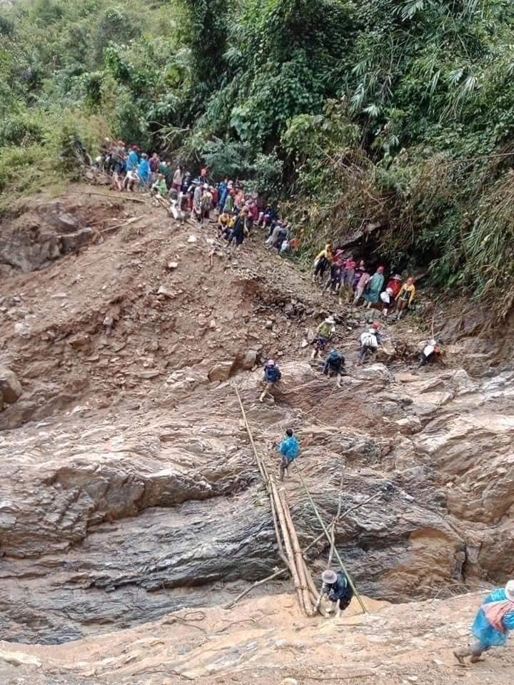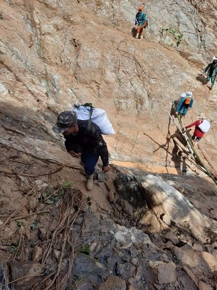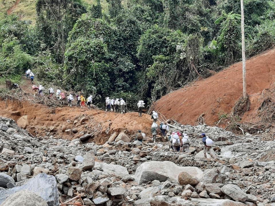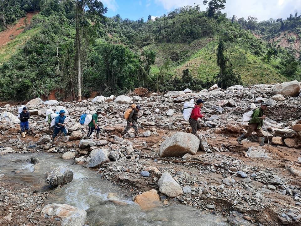 “Cõng lên chỗ Phước Thành đến 300 người gồm dân quân, thanh niên với bộ đội. Đường xá chia cắt, đi vất vả lắm mới tới được. Tranh thủ thời tiết tốt tiếp tục đi tiếp chứ trời mưa, bão số 10 vào, khi nào thời tiết không cho phép mới dừng lại”, ông Bửu cho biết.