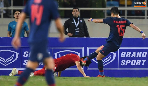 Tình huống xảy ra ở phút 81 khi Thái Lan có pha tấn công nguy hiểm đưa bóng vào khu vực tiệm cận 5m50 của khung thành tuyển VN. Khi Văn Lâm đã lỡ đà, bóng đến chân Ekanit. Lúc này, Văn Hậu cũng đã lỡ đà té ngã, nhưng anh vẫn nhanh trí di chuyển sát đất và dũng cảm đưa đầu mình hứng trọn quả sút bóng cự ly gần của Ekanit.
