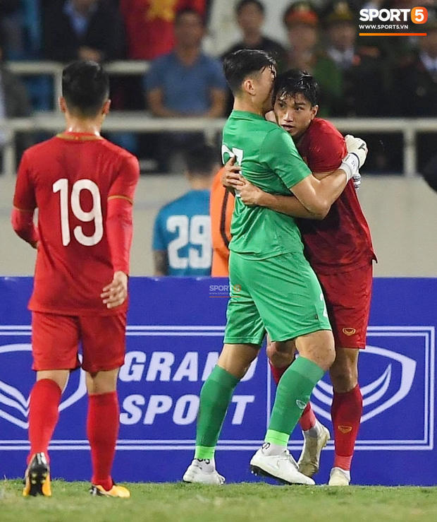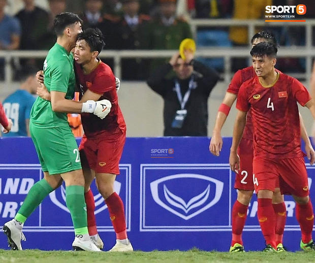 Hình ảnh Văn Hậu lấy thân cản bóng cứu cho tuyển Việt Nam khỏi bàn thua trông thấy khiến hàng triệu người hâm mộ cảm động. Sau tình huống ấy, Văn Hậu và Văn Lâm ôm chầm lấy nhau ăn mừng vì đã thoát thua trong gang tấc.