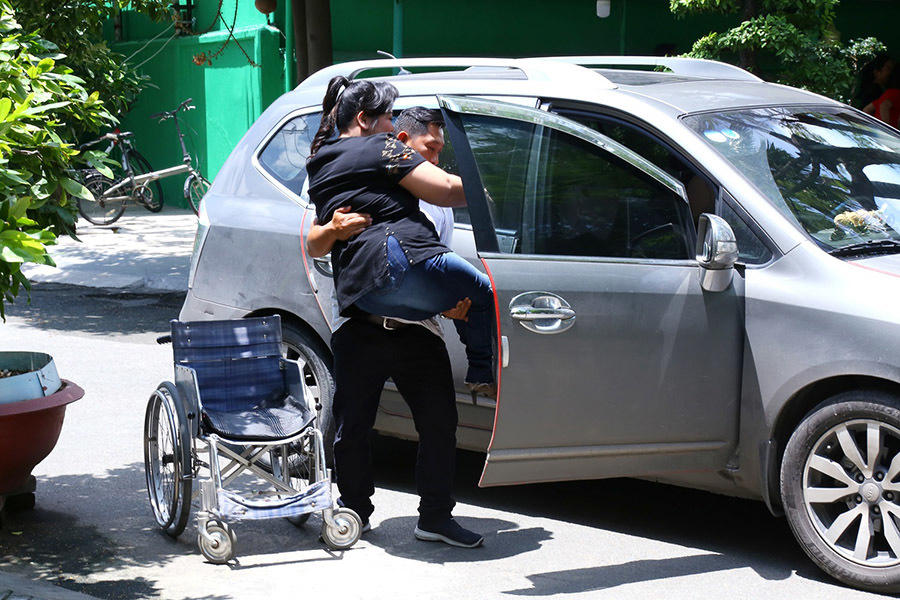 Đặc biệt, biết vợ mình bị liệt, chưa bao giờ anh để chị phải tự vất vả đi lại một lần nào. Di chuyển đến bất cứ đâu hay phải lên xuống, người đàn ông luôn chủ động ở bên cạnh hỗ trợ, bế bà xã rất thuần thục và nói câu quen thuộc: "Minh Lý, em ở đây chờ anh".