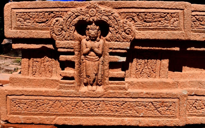 Tượng Mukhalinga có niên đại khoảng thế kỷ VII - VIII, cao 126,5cm gồm 3 phần: trụ tròn, bát giác, vuông. Trong đó, phần vuông dưới cùng là thần Brahma, tượng trưng cho sự sinh thành; phần bát giác ở giữa là thần Vishnu, tượng trưng cho sự tồn tại; phần trụ tròn trên cùng là thần Shiva, tượng trưng cho sự hủy diệt.