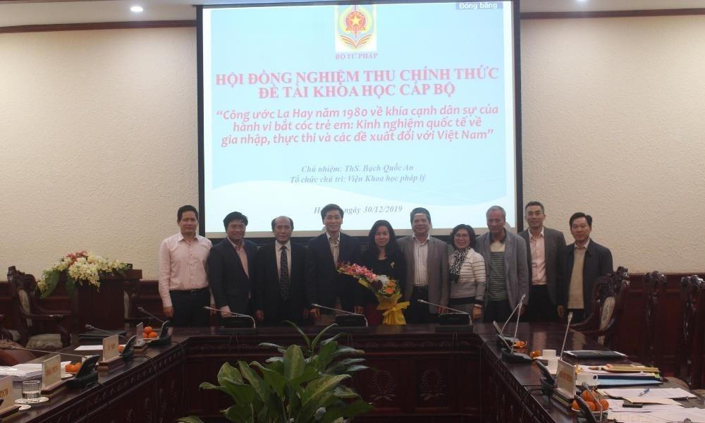 Tại buổi nghiệm thu, các thành viên Hội đồng đánh giá Đề tài đã làm sáng tỏ được nội dung cốt lõi của Công ước về hành vi bắt cóc trẻ em dưới khía cạnh dân sự, tạo nền tảng soi chiếu để đưa ra khuyến nghị Việt Nam có nên tham gia Công ước hay không, nếu có thì gia nhập vào thời điểm nào là phù hợp? Bên cạnh đó, thành viên Hội đồng cũng góp ý cụ thể về một số vấn đề như: tên của Công ước, theo đó cần phân biệt được việc “bắt cóc” và giữ, không trao trả, di chuyển trái phép trẻ em; cơ cấu của đề tài; làm rõ hơn phần cơ sở lý luận chung, trong đó cần làm nổi bật được đặc thù của Công ước...