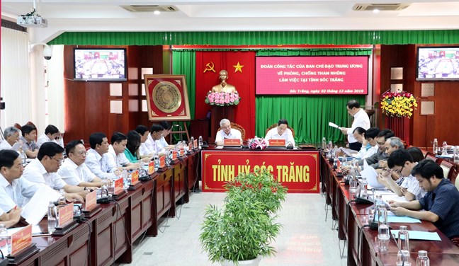 (PLVN) - Đó là yêu cầu của ông Trần Thanh Mẫn, Bí thư Trung ương Đảng, Chủ tịch Ủy ban Trung ương Mặt trận Tổ quốc (UBTW MTTQ) Việt Nam, Ủy viên Ban Chỉ đạo Trung ương về phòng chống tham nhũng (Ban Chỉ đạo) khi dẫn đầu đoàn công tác của Ban Chỉ đạo làm việc với Thường trực Tỉnh ủy Sóc Trăng về tình hình, kết quả công tác phòng chống tham nhũng (PCTN) năm 2019, diễn ra sáng nay (2/12).