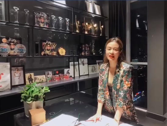 Hoàng Thùy Linh khoe với mọi người về một góc thành tích của mình. (Ảnh: Chụp màn hình)