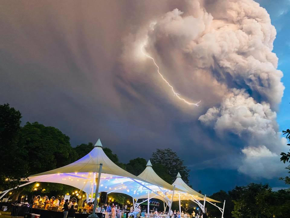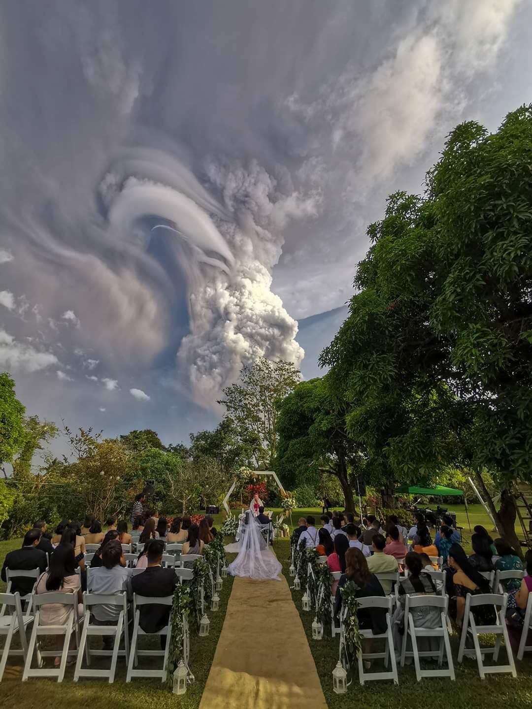 Chino và Kat Valfor kết hôn vào ngày 12/1 tại một địa điểm cách núi lửa Taal (Philippines) 16 km. Nhiếp ảnh gia của đám cưới, Randolf Evan, đã ghi lại hình ảnh ấn tượng của cặp đôi với khung cảnh phía sau lưng là ngọn núi đang thổi tàn tro khắp bầu trời.