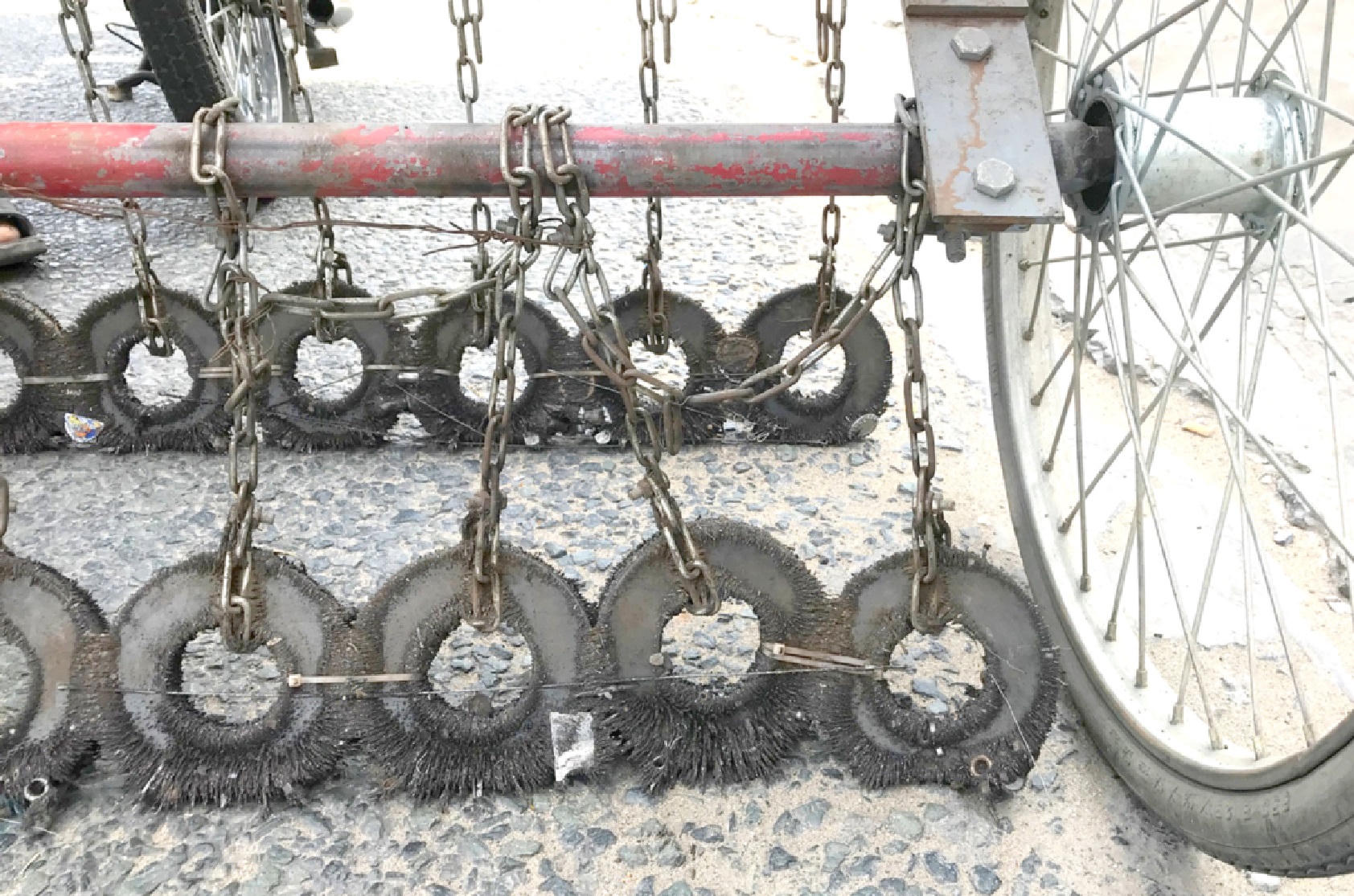 Khi chúng tôi thắc mắc, liệu có phải do “đinh tặc” hoành hành hay không mà lại nhiều đinh và sắt như thế thì ông Năm Sang quả quyết: “Không phải đâu. Người ta cố tình thì sẽ cắt các mảnh sắt, hoặc dùng kìm bấm cho nhọn rồi rải cách khoảng trên đường. Đằng này hút được chủ yếu là ốc vít, đinh… đây là do người ta chở vật liệu rơi rớt trên đường thôi”.