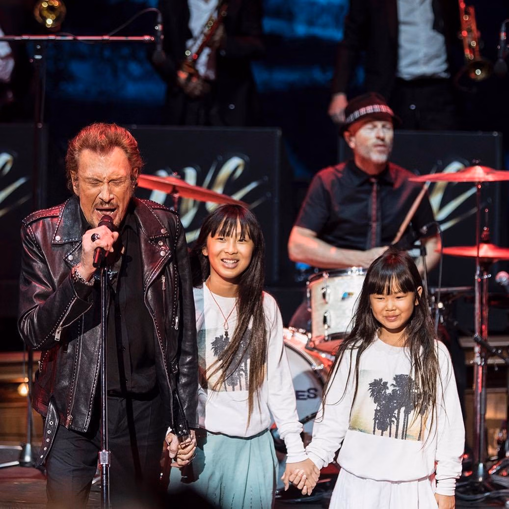 Bùi Thị Hoa và Mai Hương - con nuôi của huyền thoại nhạc rock người Pháp Johnny Hallyday.