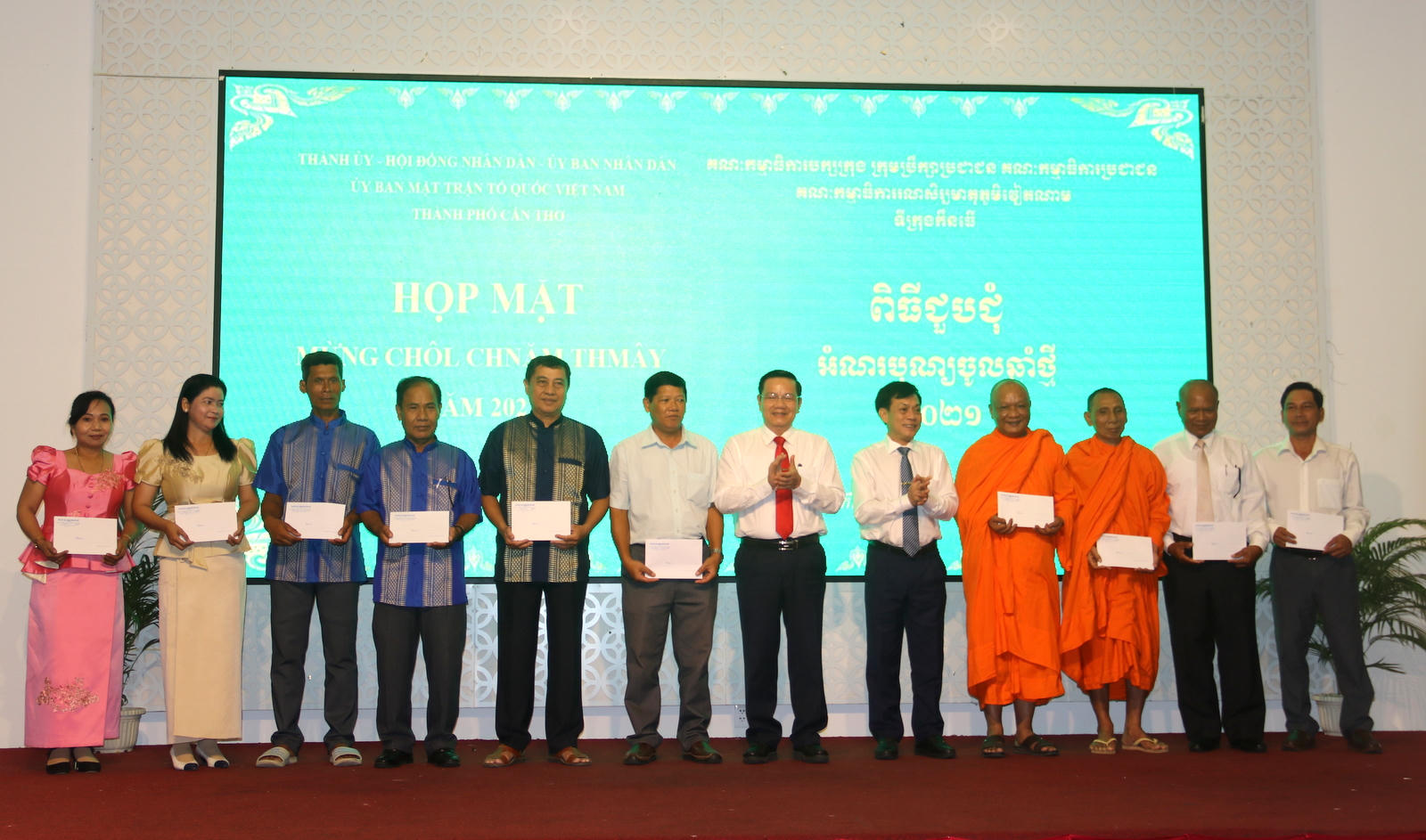 Thượng tọa Lý Hùng – Phó Hội trưởng Thường trực Hội Đoàn kết Sư sãi yêu nước TP Cần Thơ cho biết, được sự quan tâm của Đảng, Nhà nước và các cấp chính quyền trong dịp mừng Chôl Chnăm Thmây năm 2021, đồng bào dân tộc Khmer và Phật giáo Nam tông Khmer rất vui mừng và phấn khởi. Ông thay mặt Chư tôn giáo phẩm Phật giáo Nam tông Khmer và đồng bào dân tộc Khmer trong toàn thành phố chân thành cảm ơn quý lãnh đạo Đảng, Chính quyền và Mặt trận các cấp đã quan tâm đến đồng bào dân tộc trong dịp Tết quan trọng này.