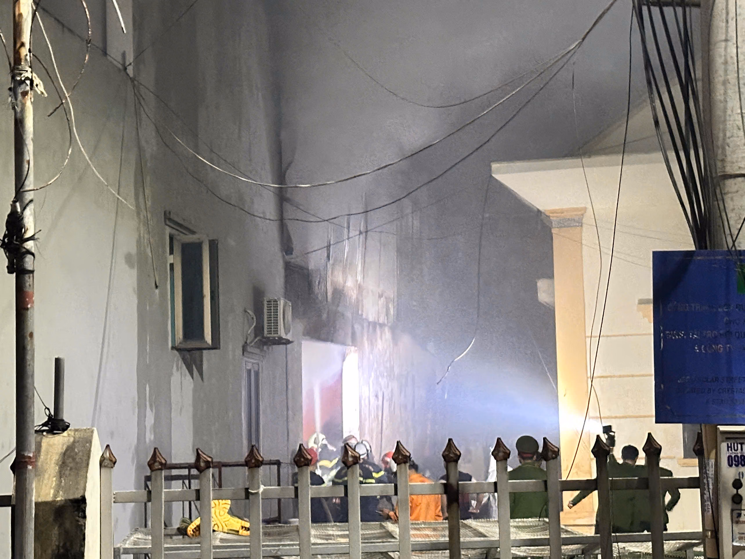 Đến khoảng 20h, đám cháy cơ bản được khống chế, song bên trong nhà xưởng vẫn còn khói và lửa âm ỉ. Lực lượng chức năng tiếp tục phun nước làm mát, xử lý tàn lửa.