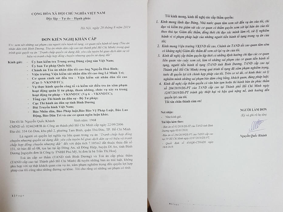Cụ thể, TAND tỉnh Bình Dương và TAND Cấp cao tại TP HCM đã đưa ra những phán xét thiếu căn cứ, áp dụng các điều luật một cách nửa vời dẫn đến nhiều sai sót ảnh hưởng trực tiếp đến nội dung của vụ án.