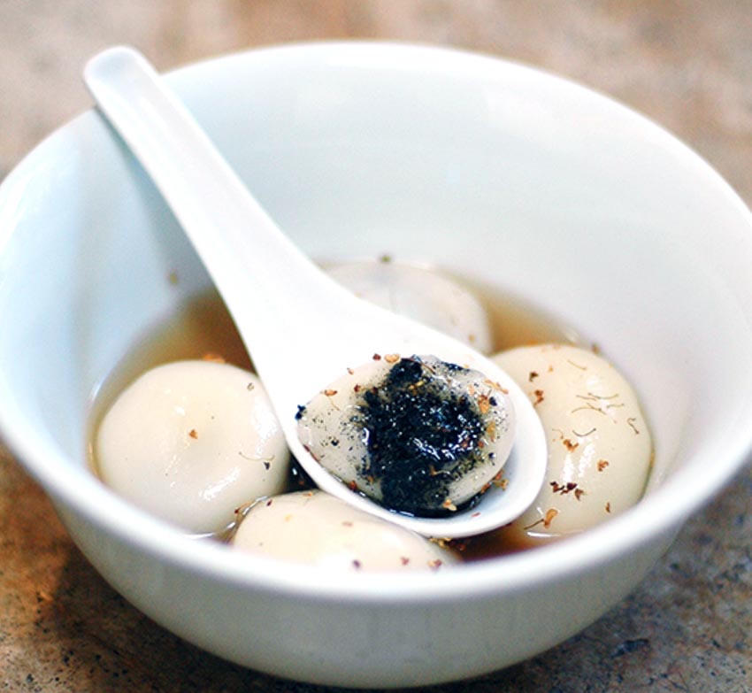 Khi viên bánh nổi lên là bánh chín, người ta tắt bếp, bỏ thêm chút hoa quế thơm ngọt là xong. Viên bánh phải đạt độ dẻo, trơn mềm chứ không dính, và khi cắn vào sẽ cho vị ngọt mềm mới là đúng vị.