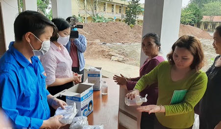 (PLVN) -Nhằm duy trì hoạt động và tích vực phòng chống dịch bệnh Covid – 19, Chi nhánh Ngân hàng Chính sách xã hội (NHCSXH) Việt Nam tỉnh Hà Nam đã tổ chức phát khẩu trang miễn phí và hướng dẫn khách hàng tại xã Hợp Lý (huyện Lý Nhân) rửa tay sát khuẩn trước khi giao dịch.
