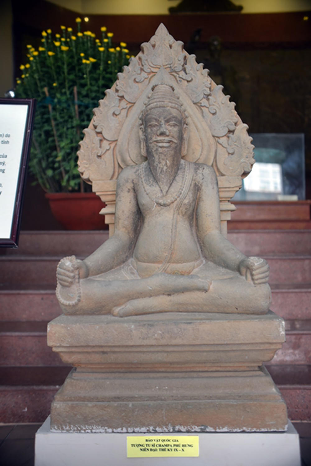 Khi bức tượng được trưng bày tại đây, nhiều người dân đến xem không khỏi tò mò trước vẻ đẹp của bức tượng. Vị tu sĩ dường như đang chìm đắm vào vũ trụ vô tận, sâu thẳm. Dù được điêu khắc từ một khối đá khô cằn, cứng và thô ráp nhưng bức tượng giờ đây mang trong mình nhiều nét mềm mại, đặc trưng của một phong cách nghệ thuật tinh hoa của truyền thống tạc tượng Chăm – Pa.