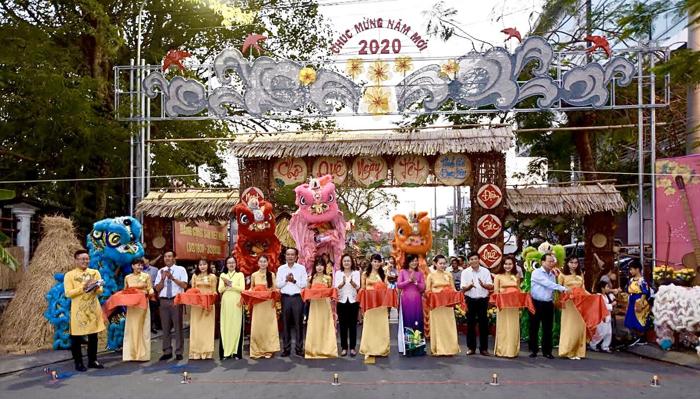Kết thúc lễ khai mạc Hội xuân, lãnh đạo tỉnh và thành phố đã cắt băng khai mạc Hội xuân “Chợ quê ngày tết” năm 2020.