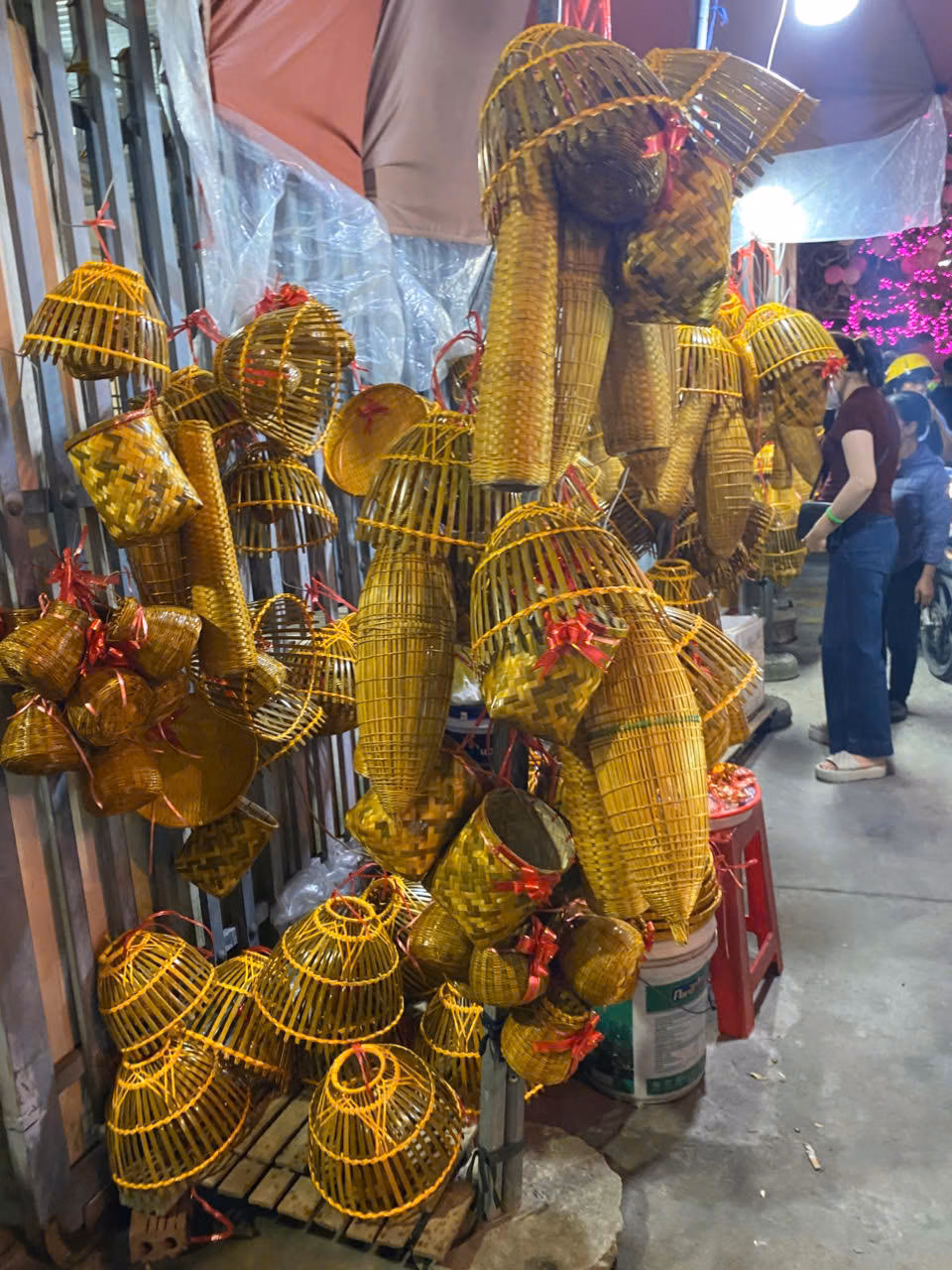 “Chúng tôi đi từ chiều, đến nơi vừa kịp vào lễ Phủ rồi ra chợ. Năm nào tôi cũng mua vài cây non, mấy cái nơm, cái đó, giỏ… mang về treo ở góc vườn hoặc đặt trước hiên nhà. Không phải để dùng nhiều, mà là để cầu tài lộc, lấy may đầu năm,” ông Xuân chia sẻ.