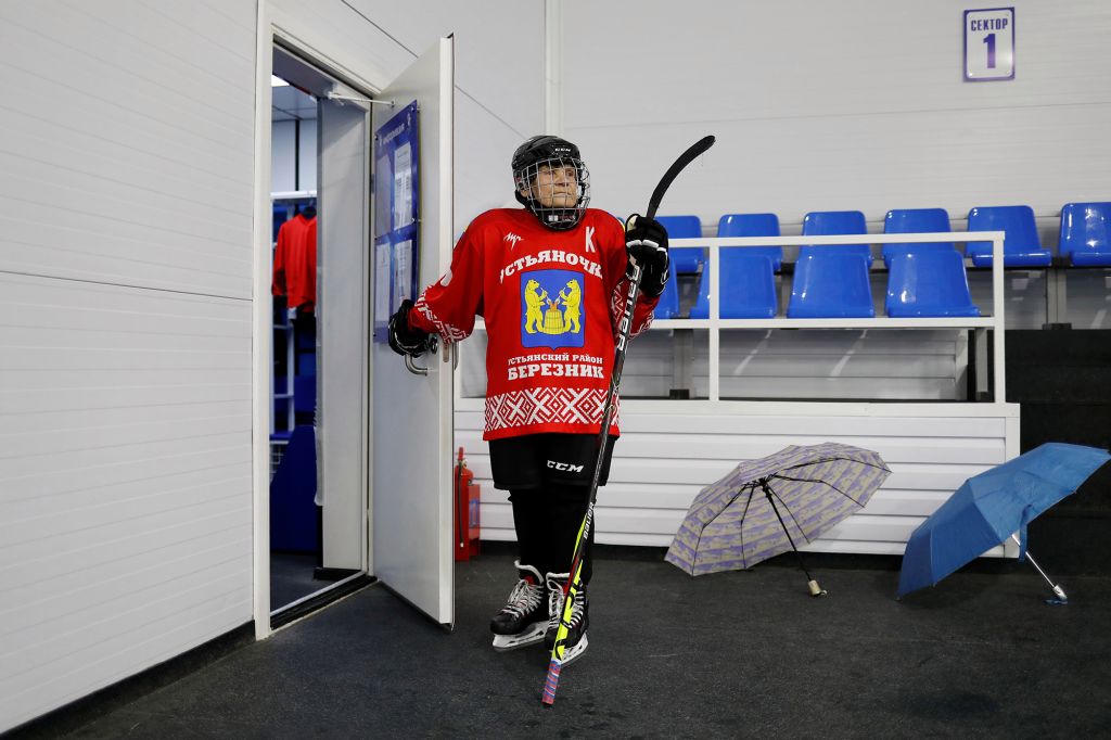 Bà Valentina tự hào với con số 80 trên chiếc áo đỏ của mình. Đó không phải là sự tôn trọng đối với cầu thủ khúc côn cầu của Nga, mà là sự tôn trọng tuổi của bà. Tất cả các đồng đội của bà đều viết tuổi trên lưng áo.