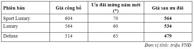 (*) Gói ưu đãi bao gồm ưu đãi giá bán (30-40 triệu), tặng bộ phụ kiện (10 triệu) và tặng gói bảo dưỡng 3 năm miễn phí (20 triệu).