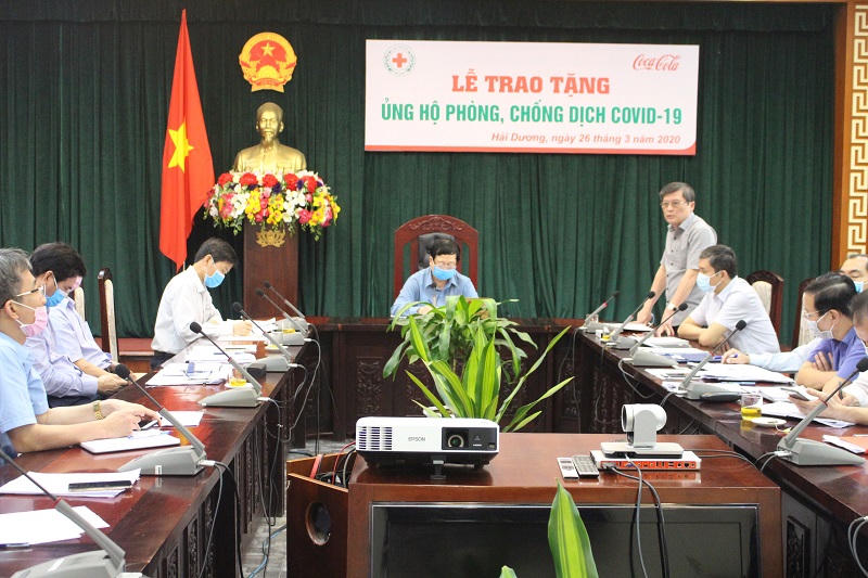 Cũng trong chiều 26/3, tại trụ sở UBND tỉnh Hải Dương, Trung ương Hội Chữ thập đỏ Việt Nam đã trao tặng Ban Chỉ đạo phòng, chống dịch Covid-19 tỉnh một số vật phẩm, hàng hóa để hỗ trợ công tác phòng, chống dịch bệnh tại các khu cách ly tập trung và dân cư trên địa bàn tỉnh.