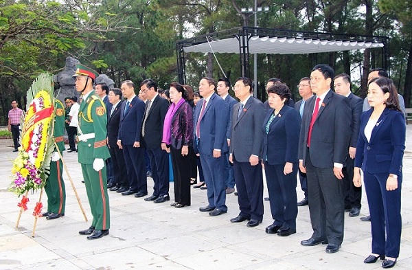 Trước đó, trong sáng cùng ngày, Chủ tịch Quốc hội Nguyễn Thị Kim Ngân cùng Đoàn công tác Trung ương đã đến viếng, dâng hoa, dâng hương tri ân, tưởng nhớ các Anh hùng liệt sỹ tại Nghĩa trang liệt sỹ Quốc gia Trường Sơn và Nghĩa trang liệt sỹ Quốc gia Đường 9. Sau khi kính cẩn nghiêng mình, dâng vòng hoa tươi, thắp nén hương thơm lên các Đài tưởng niệm và các phần mộ liệt sỹ, bày tỏ lòng thành kính, biết ơn sâu sắc công lao của các Anh hùng liệt sỹ đã dũng cảm chiến đấu, hy sinh vì nền độc lập, tự do của dân tộc, vì hạnh phúc của nhân dân.