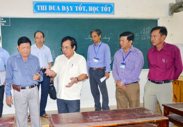 (PLVN) - Sáng 31/7, Phó Bí thư Tỉnh ủy, Chủ tịch UBND tỉnh Bạc Liêu Dương Thành Trung đến kiểm tra cơ sở vật chất, trang thiết bị phục vụ cho kỳ thi tại điểm thi trường THCS Võ Thị Sáu và trường THPT Bạc Liêu.
