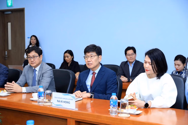 Tiếp đó, Đoàn công tác đến thăm và làm việc tại Trung tâm Nghiên cứu và Phát triển Samsung Việt Nam (SRV) tại Khu đô thị Tây Hồ Tây, phường Xuân Đỉnh. Báo cáo với Đoàn công tác, Tổng Giám đốc Samsung Việt Nam Na Ki Hong cho biết, Trung tâm R&D được khánh thành tháng 12/2022 với quy mô 3 tầng hầm, 16 tầng nổi. Hiện trung tâm có khoảng 2.600 nhân sự, trong đó chỉ 10 người là chuyên gia Hàn Quốc, cho thấy vai trò chủ đạo của đội ngũ kỹ sư Việt Nam.