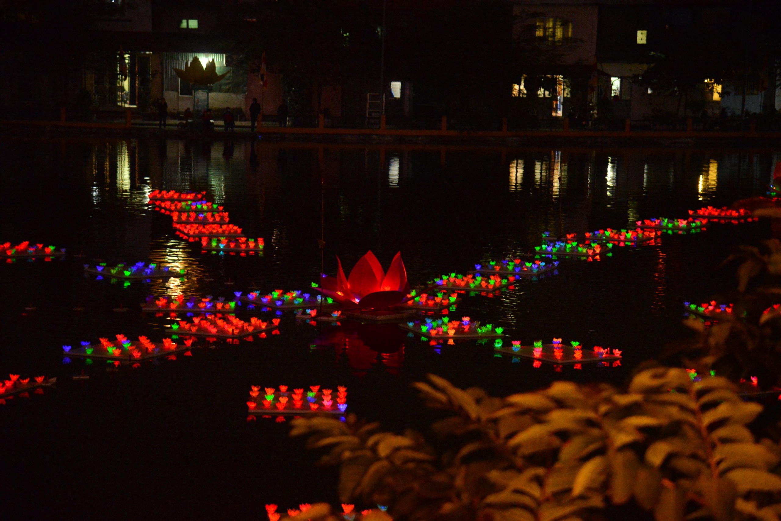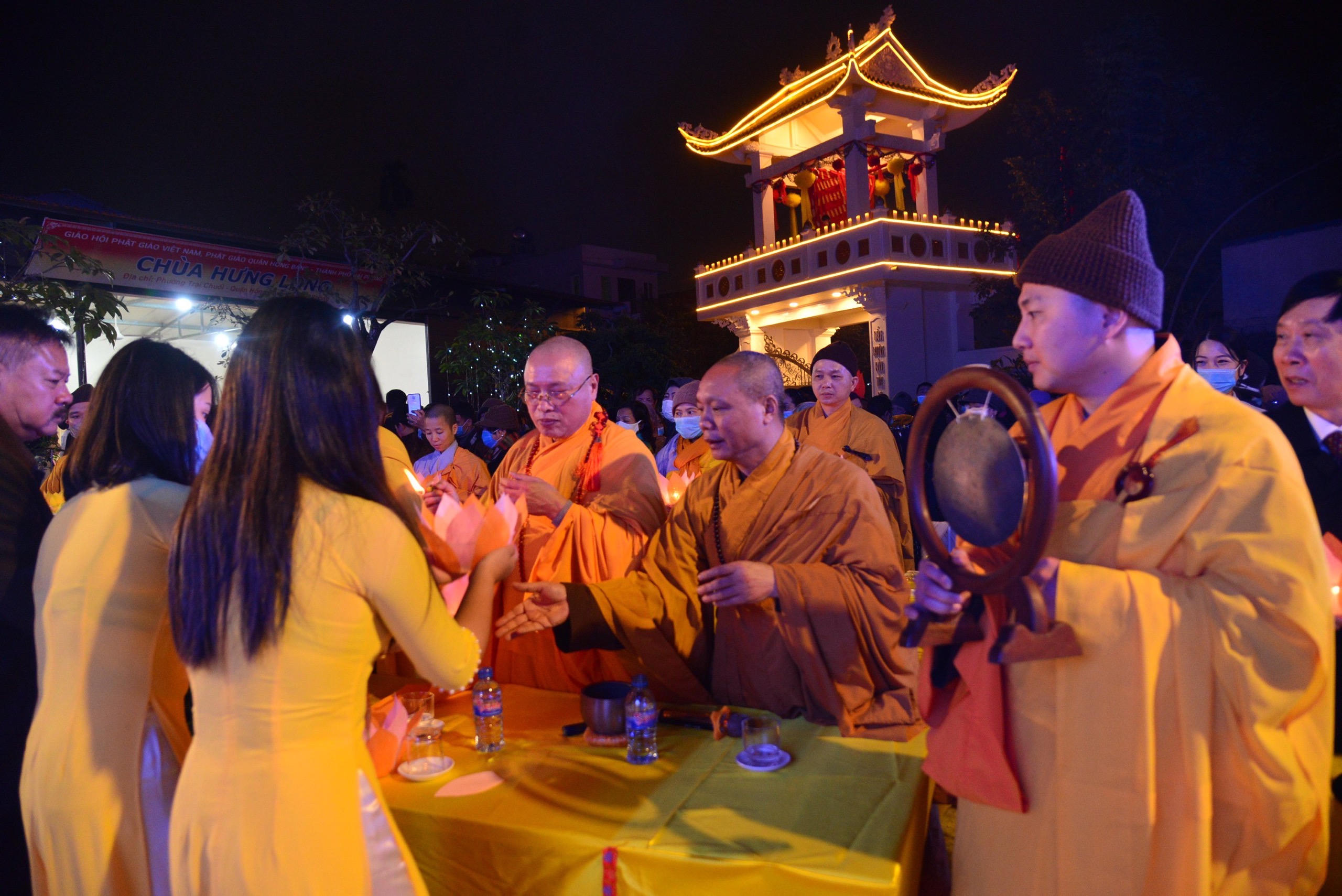 Cùng với việc cắt băng, khai chung, tăng ni và phật tử chùa Hưng Long đã thả hoa đăng cầu nguyện quốc thái dân an tại buổi lễ.