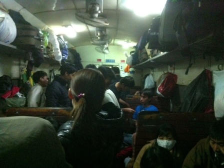 Lên được tàu, đây cũng là lúc mà người có vé cảm thấy mình may mắn đến nhường nào. Mặc dù vẫn đang nằm trong đám đông chen lấn, xô đẩy để nhích từng bước đi chậm chạp trên lối đi giữa 2 hàng ghế, nhưng những người có vé đã “định vị” được chỗ của mình sẽ nằm ở đâu. Còn đám đi “tàu chui”, vừa lo đối phó với đám nhân viên trên tàu, vừa không biết sắp tới mình sẽ ngồi đâu, đứng đâu, và vị trí của họ gần như chỉ được xác định sau khi lên tàu khoảng 1 tiếng đồng hồ.