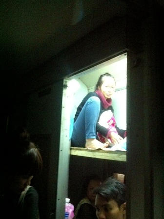 Đến rạng sáng, khi đó đám “tàu chui” tản đều ra các toa tàu, lúc đó không gian mới rộng ra được, không còn ai phải đứng. Đây cũng là lúc mọi người trải chiếu tràn lan ra lối đi, giữa 2 toa để ngủ. Còn đám “tàu chui”, có muốn ngủ cũng khó, thế là tập hợp thành những nhóm bạn bè trải chiếu để chơi bài. Thế là các toa tàu lại được thêm 1 phen ồn ào, nhốn nháo.