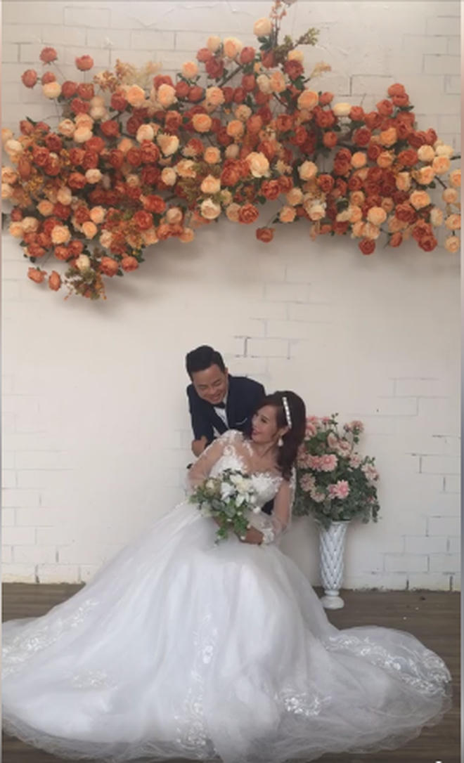 Cô dâu Thu Sao e ấp chụp ảnh bên người chồng kém tuổi.