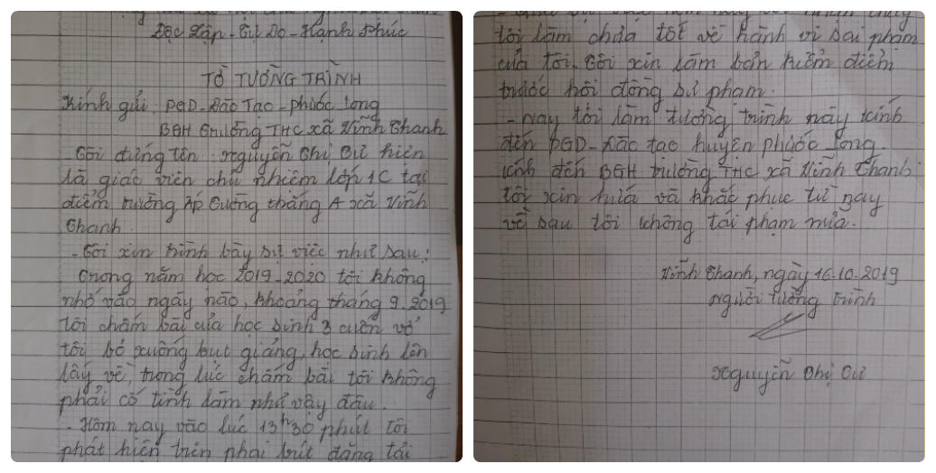 Riêng trường hợp của cô N.T.T không phải là hành vi sử dụng bạo lực với học sinh, tuy nhiên hành vi này lại không đẹp, không phù hợp với đạo đức nhà giáo nên trước mắt BGH trường đã tạm thời đình chỉ việc đứng lớp đối với cô N.T.T và phân công giáo viên khác dạy thay. Nhà trường đang đợi ý kiến chỉ đạo của lãnh đạo Phòng GD-ĐT huyện về hình thức xử lý tiếp theo.