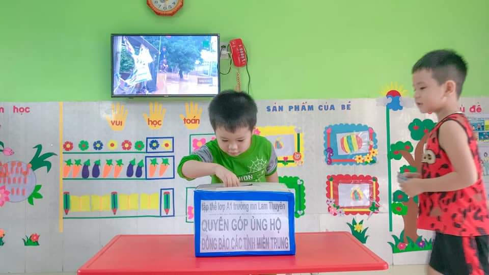 Cô, trò trường mần non Lam Thuyên chung tay ủng hộ đồng bào miền Trung