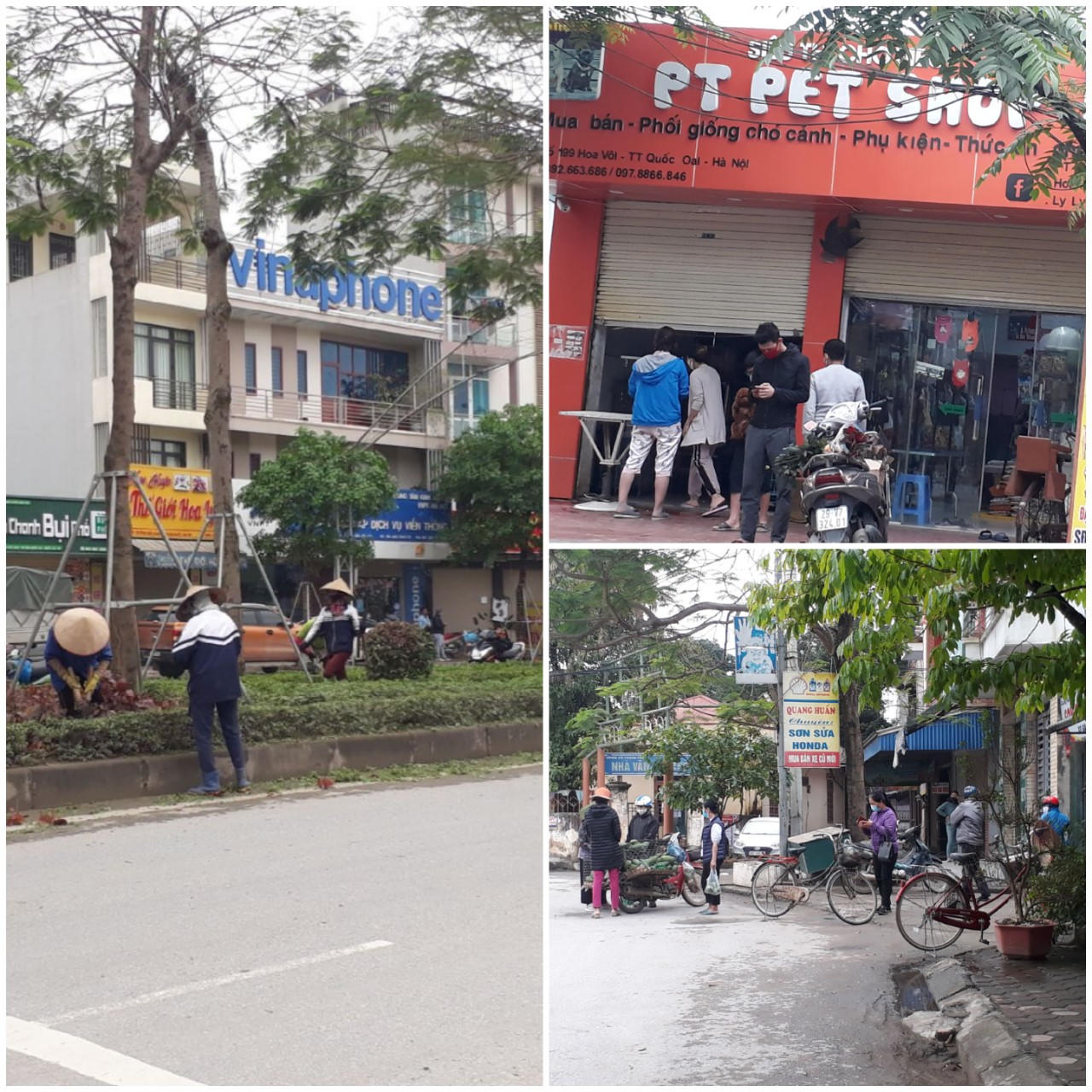 Ở huyện Quốc Oai, kịch bản tương tự cũng được diễn ra, phố xá đông người, các công trình không thiết yếu vẫn xây dựng, chợ vẫn tấp nập người qua lại. Một số cửa hàng vẫn mở cửa, một số thì đóng một phần cho có, nếu khách đến vẫn giao dịch bình thường.