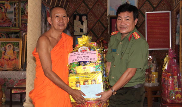 Tại các nơi đến thăm, Phó Giám đốc Công an tỉnh An Giang Lâm Thành Sol đã ân cần thăm hỏi và chúc các vị Hòa Thượng, Thượng Tọa, Đại Đức, Sư Sãi, À Cha và bà con phật tử đón Lễ Sene Dolta vui tươi, an lành và hạnh phúc.
