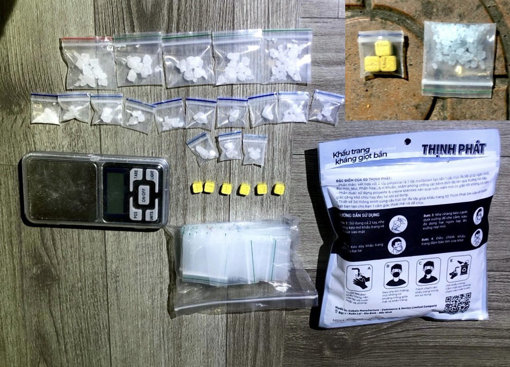 Qua kiểm tra, lực lượng chức năng phát hiện 02 đối tượng đang tàng trữ 02 gói nilong bên trong chứa các hạt tinh thể màu trắng và các viên nén màu vàng nghi là các chất ma túy. Tiến hành khám xét nơi ở của các đối tượng, lực lượng chức năng tiếp tục thu giữ: 21 bịch nilong bên trong chứa các hạt tinh thể màu trắng và 06 viên nén màu vàng nghi là các chất ma túy.
