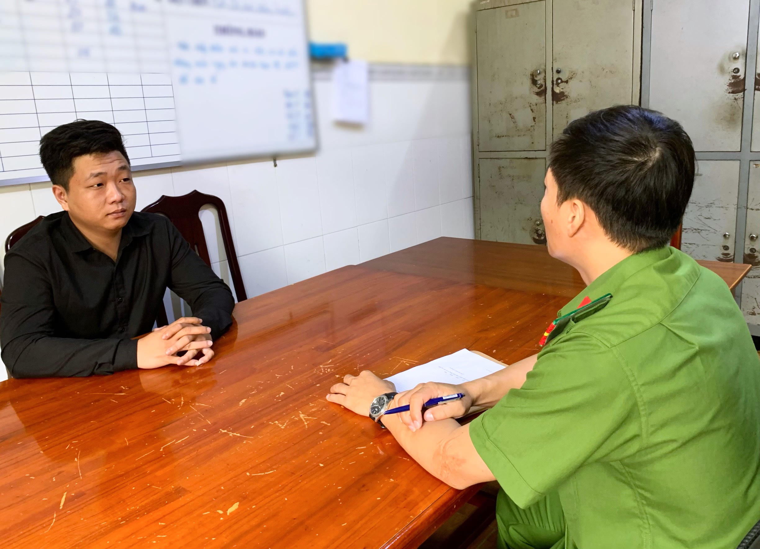 Đối tượng Nguyễn Minh Thuận tại cơ quan Công an. |