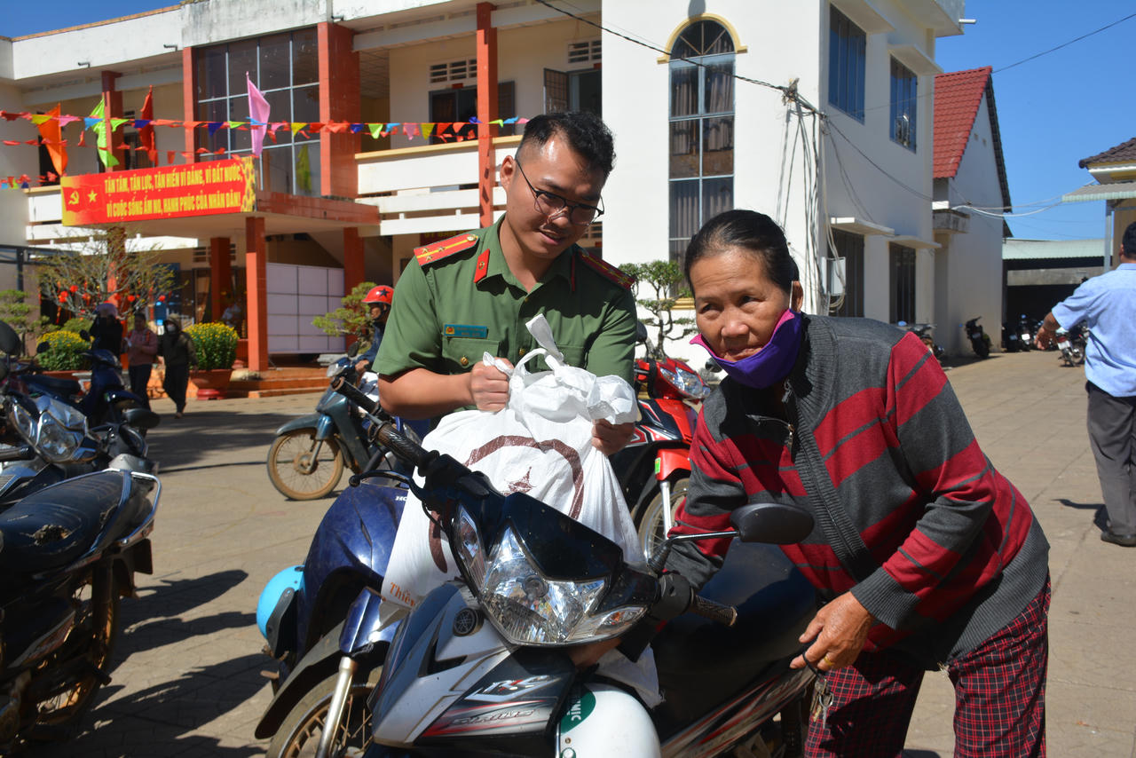 Ông Điểu Dũng (75 tuổi) người dân tộc M’nông bày tỏ sự xúc động và gửi lời cảm ơn sâu sắc đến chính quyền địa phương và lực lượng Công an tỉnh Đồng Nai đã luôn quan tâm, sẻ chia với đồng bào dân tộc thiểu số có hoàn cảnh khó khăn. Những phần quà Tết không chỉ mang giá trị vật chất mà còn là nguồn động viên tinh thần to lớn, giúp bà con thêm ấm lòng, tin tưởng vào sự chăm lo của Đảng, Nhà nước và lực lượng công an.