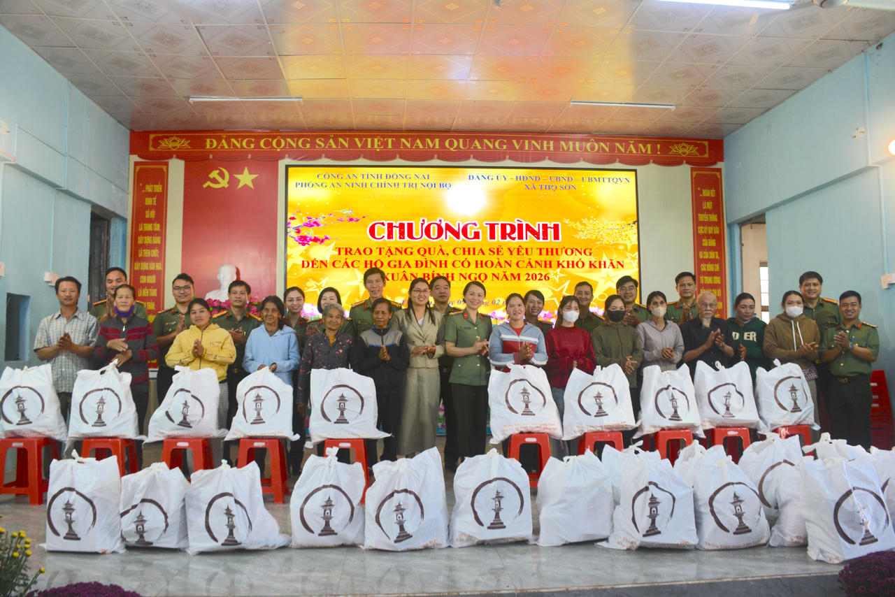 Lực lượng công an tỉnh Đồng Nai cùng UBND xã Thọ Sơn trao tặng 100 phần quà, chia sẽ yêu thương đến các hộ gia đình có hoàn cảnh khó khăn nhân dịp Xuân Bính Ngọ năm 2026.