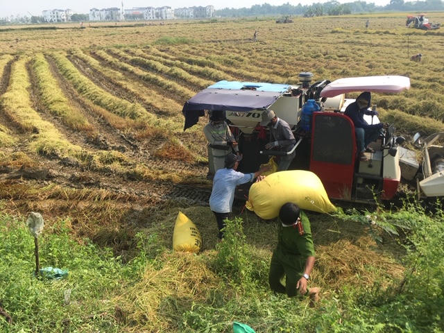 Bên cạnh đó, Công an TP. Huế cũng huy động lực lượng hỗ trợ cho người dân gặt và phơi lúa nhằm hạn chế mức thiệt hại thấp nhất do ảnh hưởng của đợt mưa lớn vừa qua.