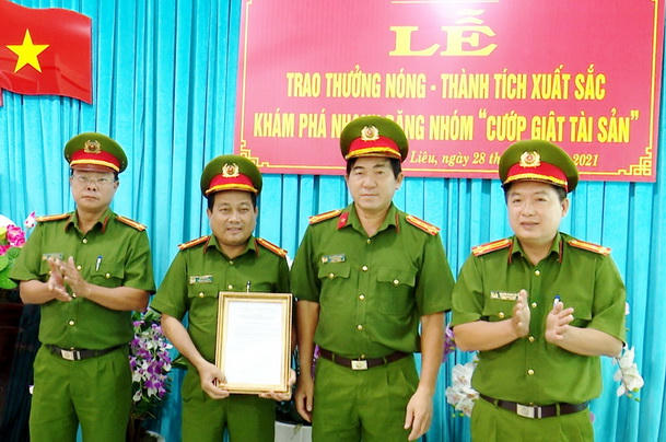 Công an tỉnh Bạc liêu thưởng nóng lực lượng phá án của Công an huyện Hòa Bình