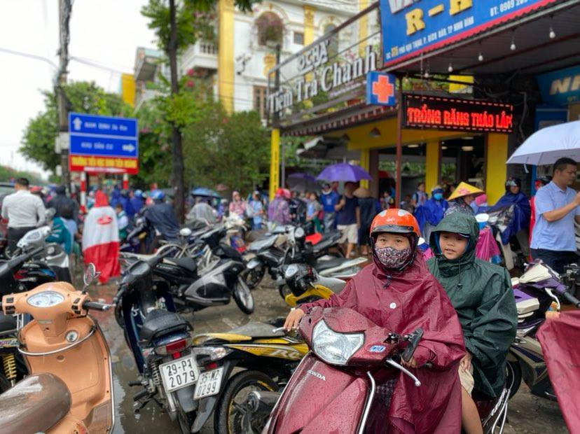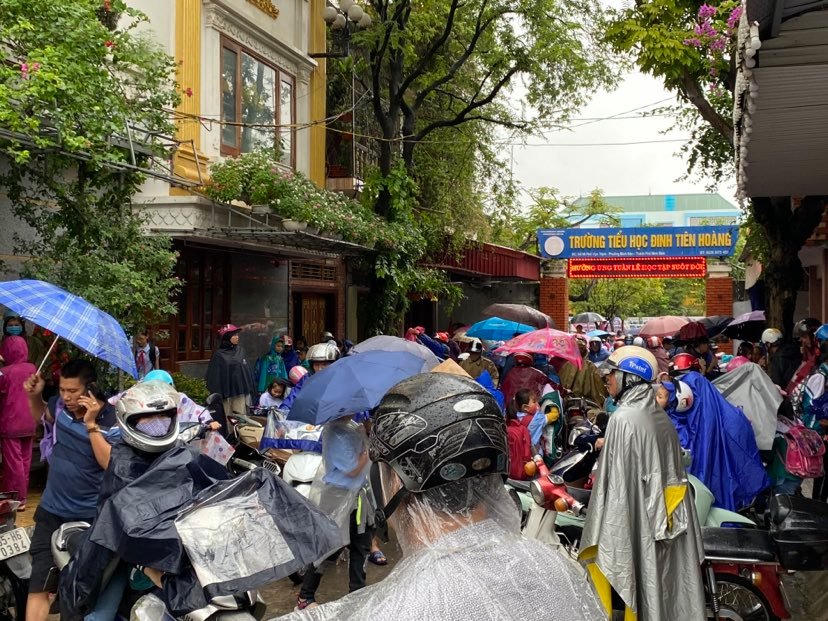 Khoảng 11h ngày 14/10, rất nhiều phụ huynh dừng đỗ xe trước cổng trường, trên vỉa hè, tràn xuống cả lòng đường trước Trường Tiểu học Đinh Tiên Hoàng, bên quốc lộ 10, thuộc địa phận phường Bích Đào, Thành phố Ninh Bình.