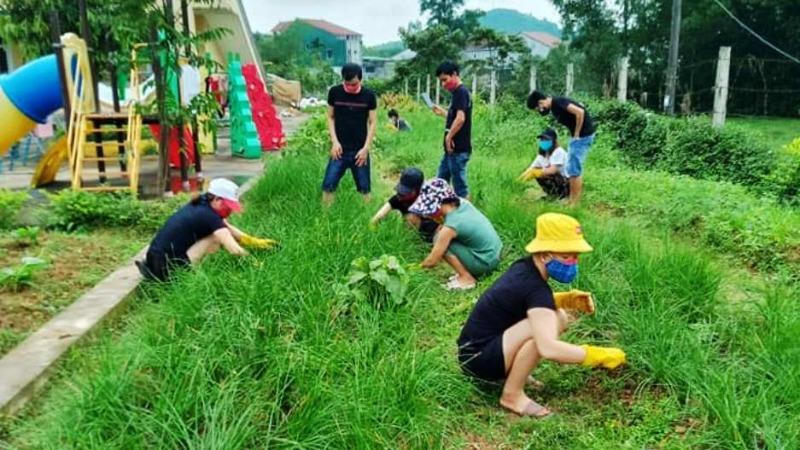 Hiểu được điều đó, những người cách ly tại đây đã cùng nhau chung tay chăm sóc cây cối, vệ sinh trường lớp. Điều này không chỉ giúp các cô yên tâm mà còn đảm bảo cây cối trong trường được tươi tốt.