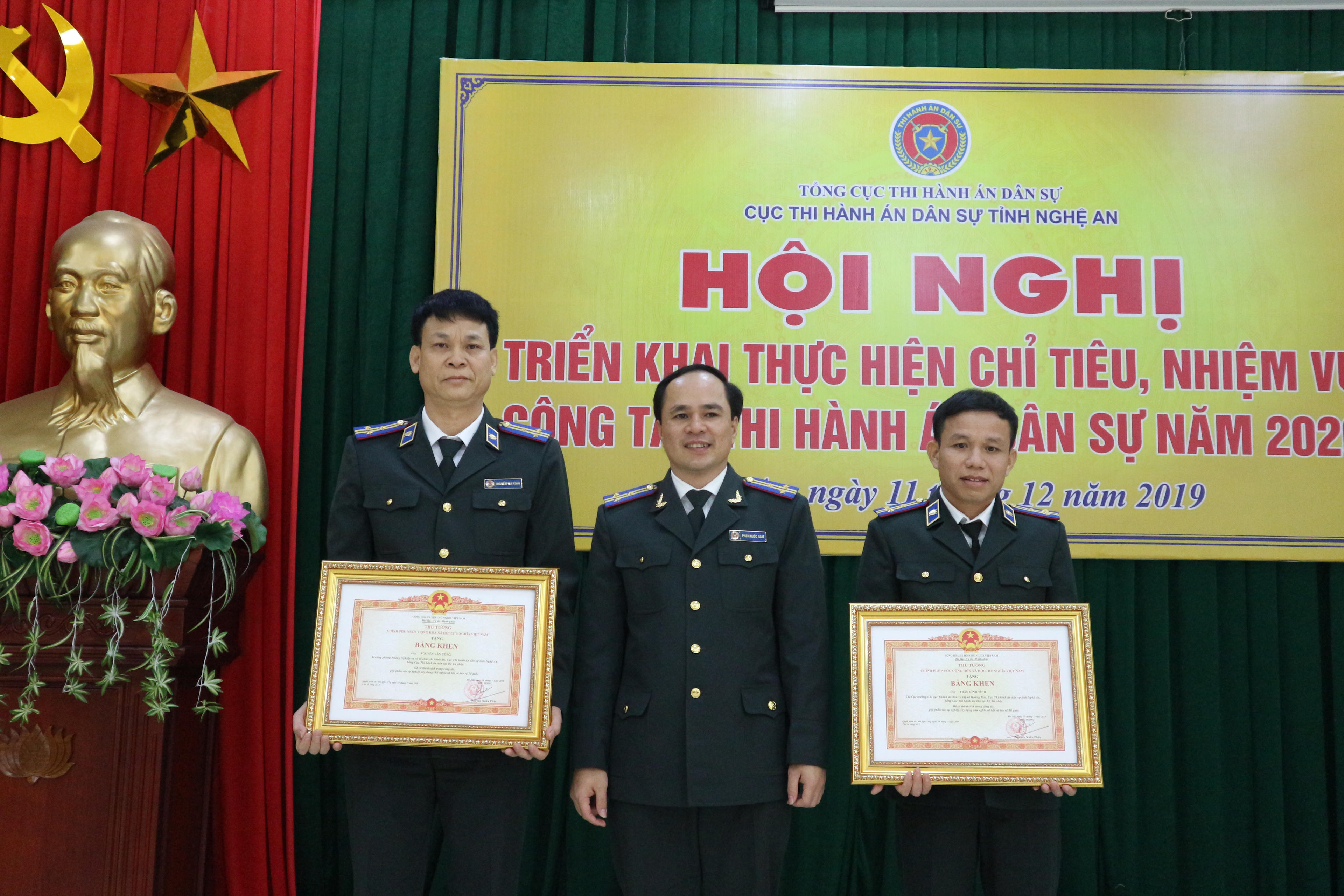 Tại hội nghị, Cục THADS tỉnh Nghệ An đã trao bằng khen của Thủ trướng Chính phủ cho các cá nhân, tập thể có thành tích xuất sắc trong năm 2019.