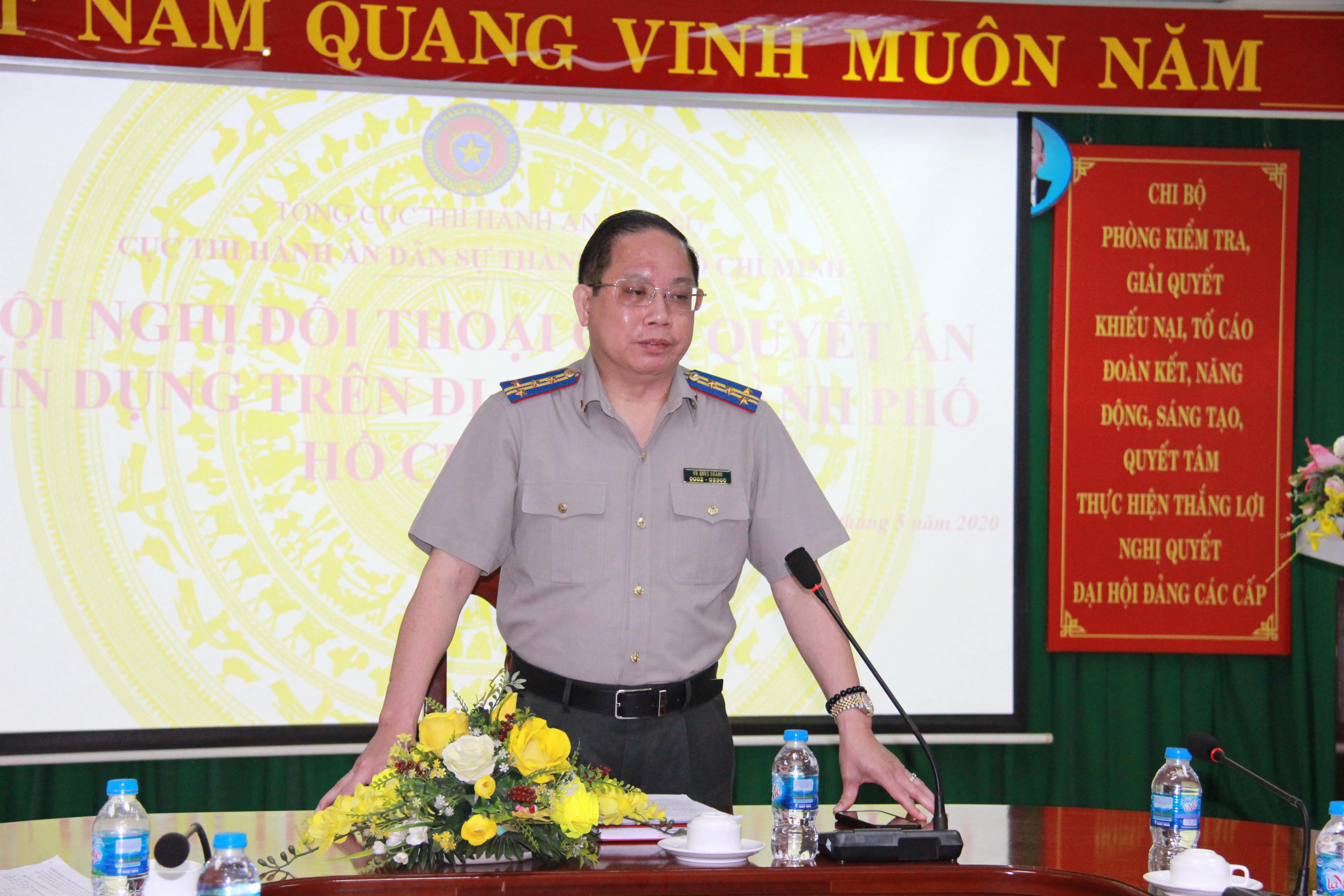 Phát biểu tại buổi đối thoại, đại diện lãnh đạo cục và lãnh đạo Ngân hàng Nhà nước nhấn mạnh thời gian tới cần nâng cao hơn nữa hiệu quả công tác thi hành án dân sự liên quan đến các TCTD. Đồng thời yêu cầu các ngành, đơn vị liên quan tập trung thực hiện các nội dung trọng tâm: Thủ trưởng các đơn vị cần nắm bắt đầy đủ, cụ thể các việc thi hành án đối với các TCTD để chỉ đạo giải quyết phù hợp với tình hình thực tế và quy định của pháp luật. Cơ quan thi hành án dân sự các cấp nếu gặp những việc khó khăn trong thi hành thì có văn bản thông báo cho TCTD liên quan, Ngân hàng Nhà nước Chi nhành Tp.HCM để bàn bạc phương án xử lý thích hợp. Các TCTD cần phối hợp chặt chẽ với cơ quan thi hành án dân sự trong việc rà soát và tổ chức thi hành án, cung cấp các thông tin có liên quan đến tài sản thế chấp để việc xử lý tài sản được nhanh chóng, bảo đảm đúng quy định của pháp luật. Ngân hàng Nhà nước Chi nhánh TP.HCM giám sát chặt chẽ việc xử lý nợ xấu của các tổ chức tín dụng